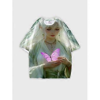 T-Shirt Round Neck, Loose Short Sleeve Pattern Graphic Tee, Unisex Summer Casual Top V2246