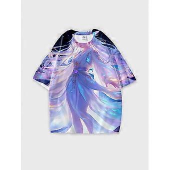 T-Shirt Round Neck, Loose Short Sleeve Pattern Graphic Tee, Unisex Summer Casual Top V2261