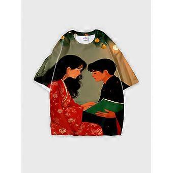 T-Shirt Round Neck, Loose Short Sleeve Pattern Graphic Tee, Unisex Summer Casual Top V2300