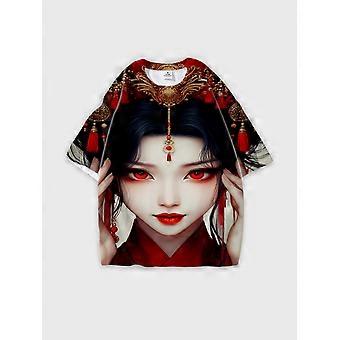 T-Shirt Round Neck, Loose Short Sleeve Pattern Graphic Tee, Unisex Summer Casual Top V2461