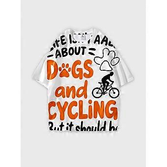 T-Shirt Round Neck, Loose Short Sleeve Pattern Graphic Tee, Unisex Summer Casual Top V3456