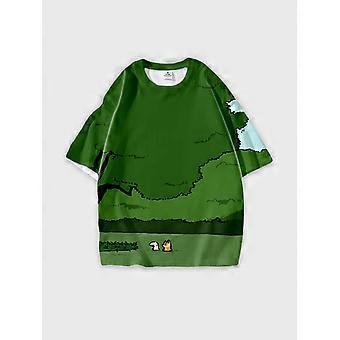 T-Shirt Round Neck, Loose Short Sleeve Pattern Graphic Tee, Unisex Summer Casual Top W1618
