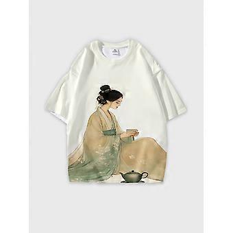 T-Shirt Round Neck, Loose Short Sleeve Pattern Graphic Tee, Unisex Summer Casual Top W2020