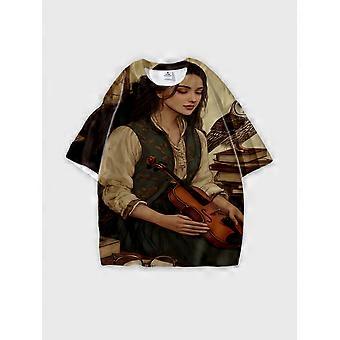 T-Shirt Round Neck, Loose Short Sleeve Pattern Graphic Tee, Unisex Summer Casual Top W2085
