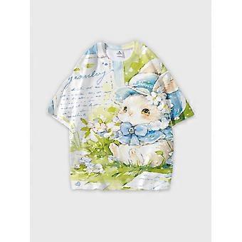 T-Shirt Round Neck, Loose Short Sleeve Pattern Graphic Tee, Unisex Summer Casual Top W946