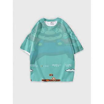 T-shirt Round Neck Patterned Loose Short Sleeve D2204