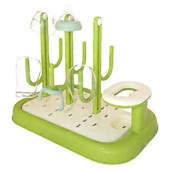 Baby Bottle Drying Rack Vertical Cactus Shape with Rounded and Water Collection Tray Green