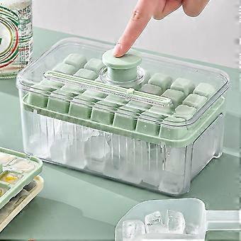 Ice Cube Tray Press Type Silicone Mold with Lid LargeCapacity OdorResistant for Freezer Drinks Green