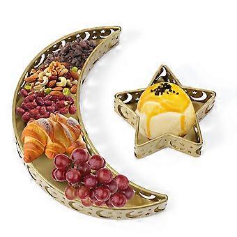 2pcs Ramadan Serving Tray Set, Moon and Star Shape Gold Iron Eid Mubarak Tableware for Party Decor