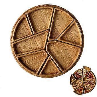 Wooden Serving Tray with Removable Puzzle Compartments, Bamboo Snack Platter for Party and Kitchen