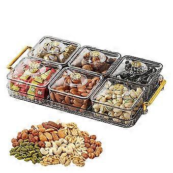 Clear Sectioned Serving Tray with Lid and Handle, Six Compartments for Snacks, Cookies, Parties