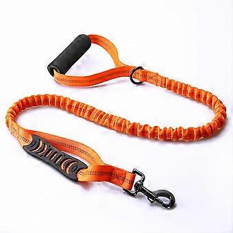 Tactical Dog Training Leash With Bungee, Nylon Construction, 2 Control Handles, Reflective Stitching, Orange