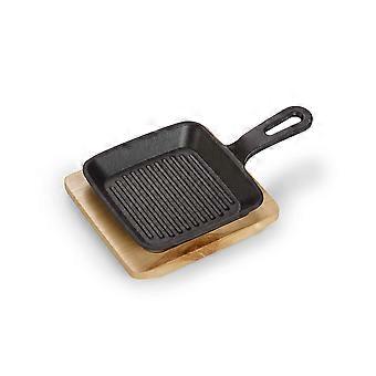Cast Iron Grill Pan Square with Wooden Serving Board, PreSeasoned, Oven Grill and Induction Safe