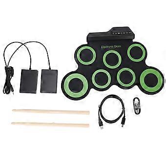 Electronic Drum Kit with USB Recording, Stereo Output, BuiltIn Metronome, Green Hand Roll Set