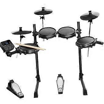 Electronic Drum Set with Quiet Mesh Pads, USB MIDI, 150 Sounds, Adjustable Throne, Compact Black