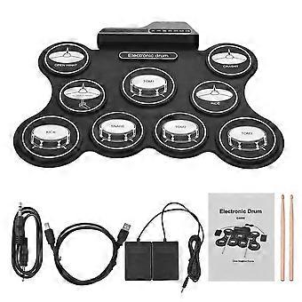 Electronic Drum Kit 9 Pad Roll Up Set with Pedals, Silicone Pads, Headphone Jack for Beginners