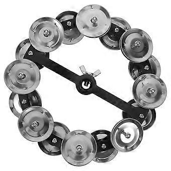 Hi Hat Tambourine Handbell Rattle Two-Row Bells KTV Black Durable Musical Instrument