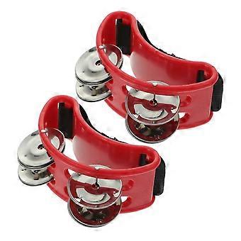 Dual Row Foot Tambourine with Clear Jingle Tones, Hands Percussion, Vibrant Red Finish