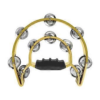 Double Row Hammered Brass Hand Bell Tambourine with Metal Clamps for Adults, Church, KTV Parties, Hi Hat Music