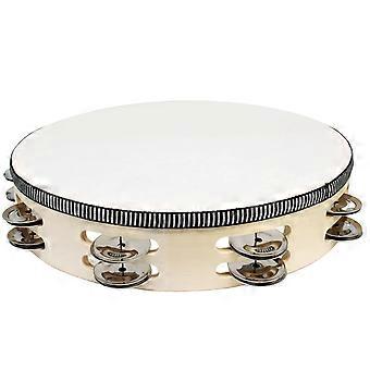 10 Inch Birch Wood Tambourine with Double Row Jingles and Radiant Reflective Percussion Sound