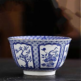 Vintage Japanese Tea Cup Ceramic Kung Fu Blue and White Porcelain Solid Bottom for Oolong Puer