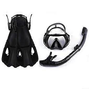 Snorkeling Gear Set with Dry Mask and Fins, Tempered Glass, Adjustable Fit, Black L/XL