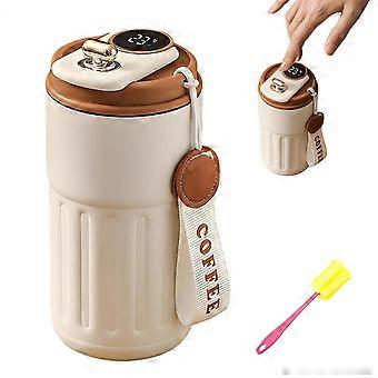 Travel Mug with LED Temperature Display, 316 Stainless Steel Vacuum Insulated Bottle 450ml Brown for Hot and Cold Drinks