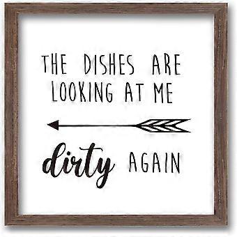 The Dishes are Looking at Me Dirty Again Art Sign Solid Wood Framed Block Sign Funny Farmhouse Decor Sign with Arylic Layer 13x13 Inch Large Hangable
