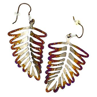 Ti2 Titanium Large Fern Leaf Drop Earrings - Brown