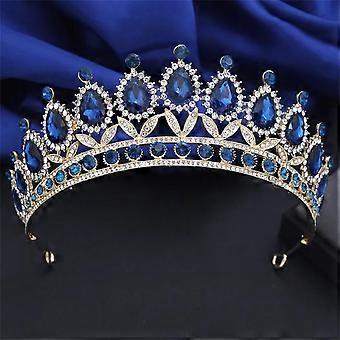 Elegant Baroque Blue Bridal Crown Rhinestone Wedding Tiara for Bride Lightweight Hair Accessory