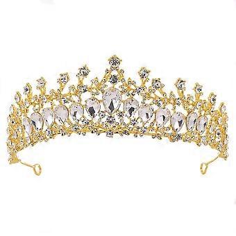 Gold Wedding Tiara for Bride Handmade Bridal Crown with Rhinestones Queen Style Baroque Design