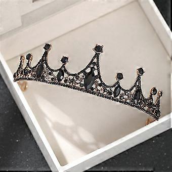 Bridal Tiara Vintage Baroque Crown with Black Rhinestones for Wedding or Bachelorette Party