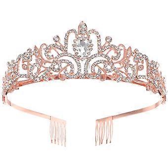 Birthday Crown for Women Crystal Princess Tiara Rose Gold Bridal Hair Accessory for Wedding