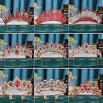 Bridal Crown with Radiant Crystal Detailing Vintage Rhinestone Tiara for Wedding Queen Red 15x6cm