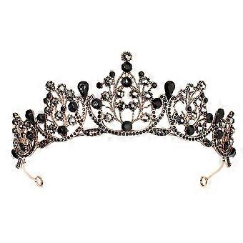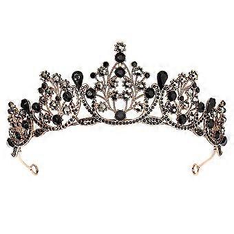 Vintage Princess Crown with Crystal Rhinestones, Gothic Black Baroque Tiara for Bridal Wedding Prom