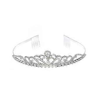 Heart Shaped Tiara Crown with Rhinestones and Secure Hair Comb for Princess Look