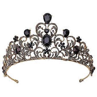 Vintage Black Crystal Wedding Tiara for Bride, Elegant Rhinestone Bridal Crown for Women