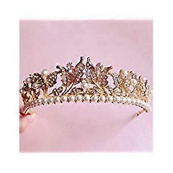 Vintage Bridal Tiara with Pearls and Crystals Gold Wedding Headband Crown for Bride