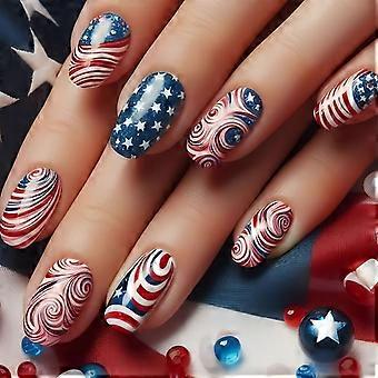Fourth of July Press On Nails with American Flag Design, Medium Square Patriotic Acrylic Fake Nails