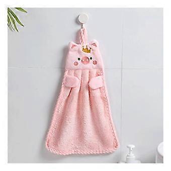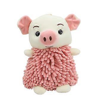 Pink Pig Plush Hand Towel Soft Chenille QuickDry Cute Animal Hanging Towel for Bathroom and Kitchen