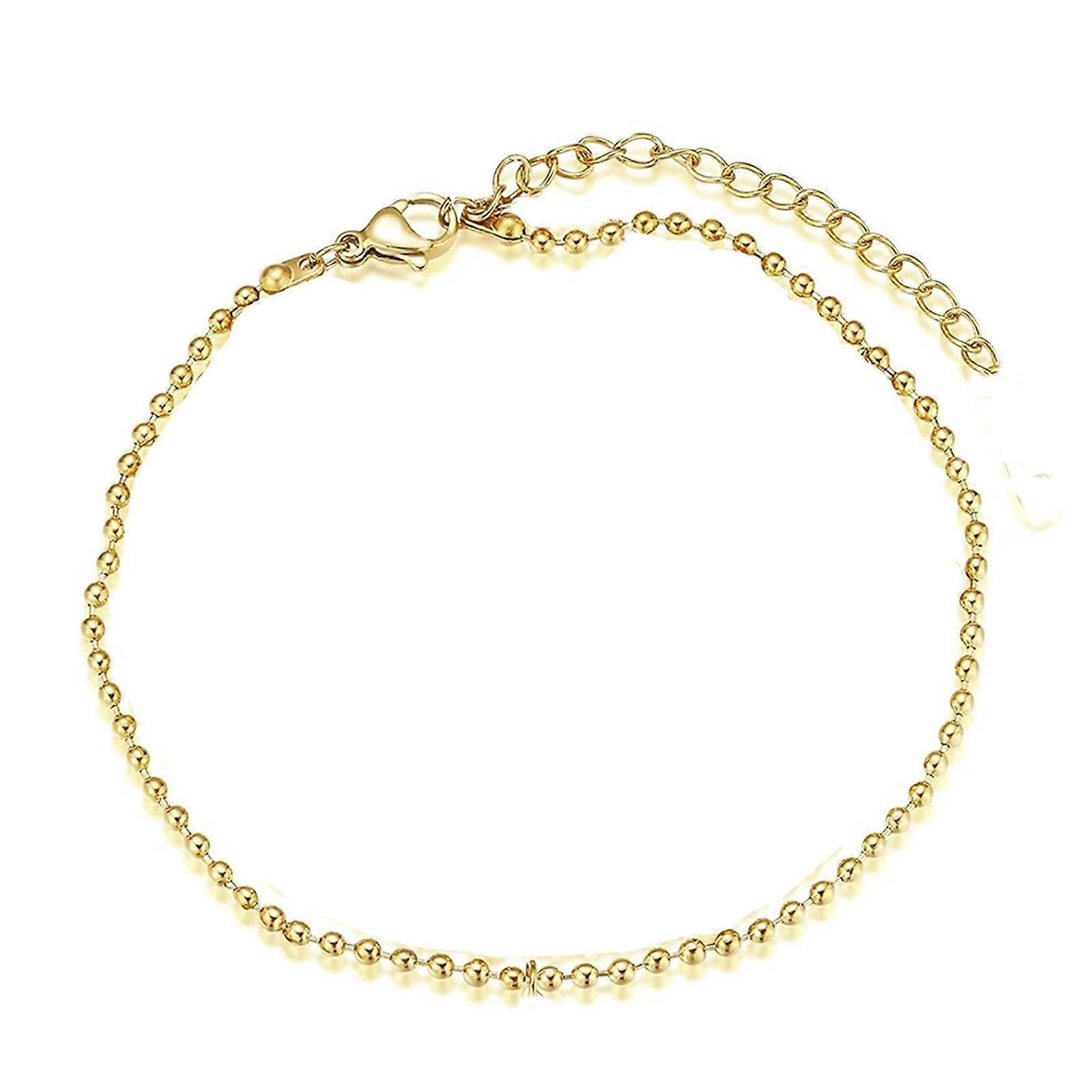 Anklet for Women, Anklet Stainless Steel Thin Bead Chain Anklet Extension Silver Gold 30 cm Gold A