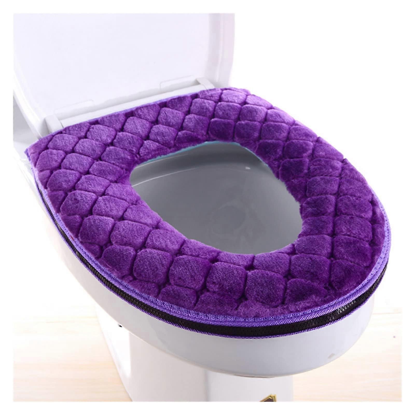 Toilet Seat Cover Thickened Plush Soft Warm Winter Cushion Purple 1 Pc Bathroom Bathware