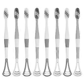 8pcs Soft Bristle Dual Head Toothbrush with Tongue Scraper for Adults Teeth and Tongue Cleaning