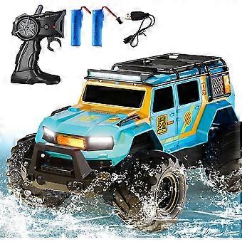Waterproof Amphibious RC Car 4WD AllTerrain OffRoad Speed Stunt Vehicle with LED Lights for Kids Boys Girls Blue