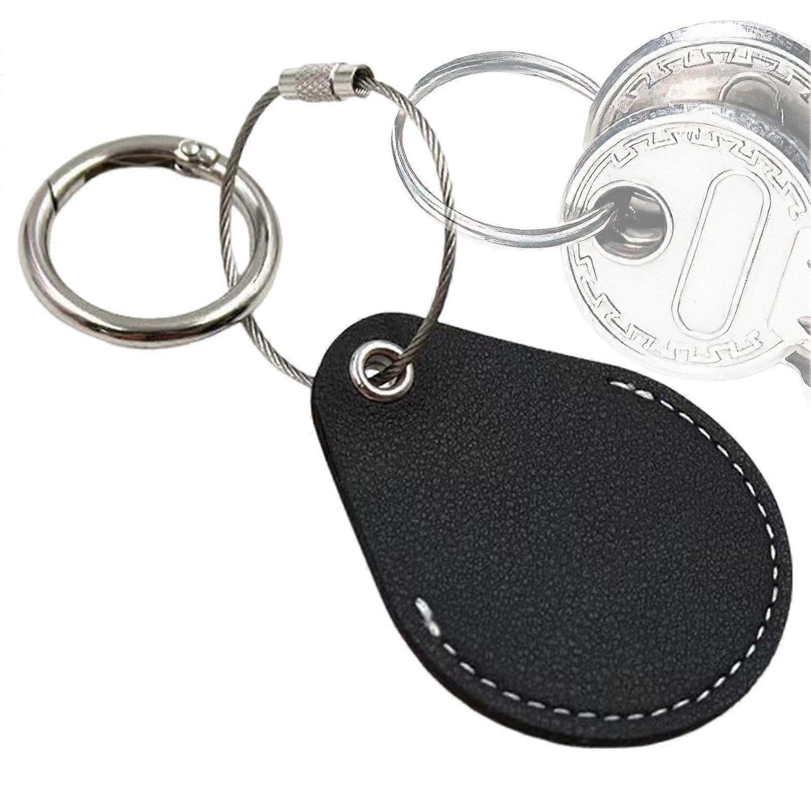 Tracker Case for Dog Collar, PU Leather Tracker Holder, Key Ring Holder, Black Protective Cover with Metal Ring Lock for Pets
