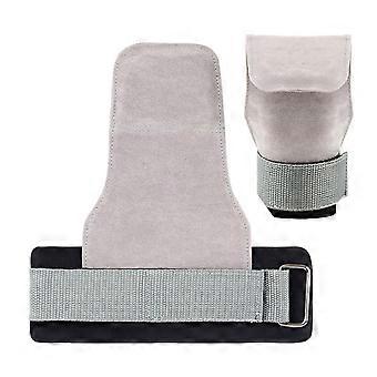 2x Weight Lifting Grips with Silicone Palm Protector, Non Slip Fingerless Gym Workout Gloves for Training Fitness, Gray