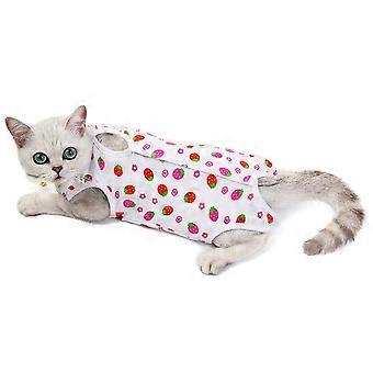 Cat Recovery Suit for Abdominal Wounds, Breathable Post Surgery Clothing for Cats with Magic Closure, M Strawberry