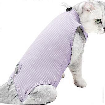 Cat Recovery Suit Soft Breathable Cotton Speeds Healing Prevents Licking for Small Cats Purple