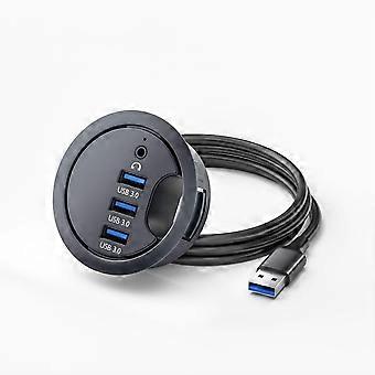 USB 3.0 Desk Grommet Hub 60mm Flush Mount 3 Ports with 3.5mm Audio Speed Transfer