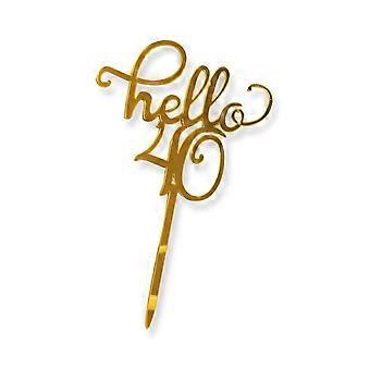 40th Birthday Cake Topper Gold Mirror Acrylic Hello 40 Reusable Decoration for Party